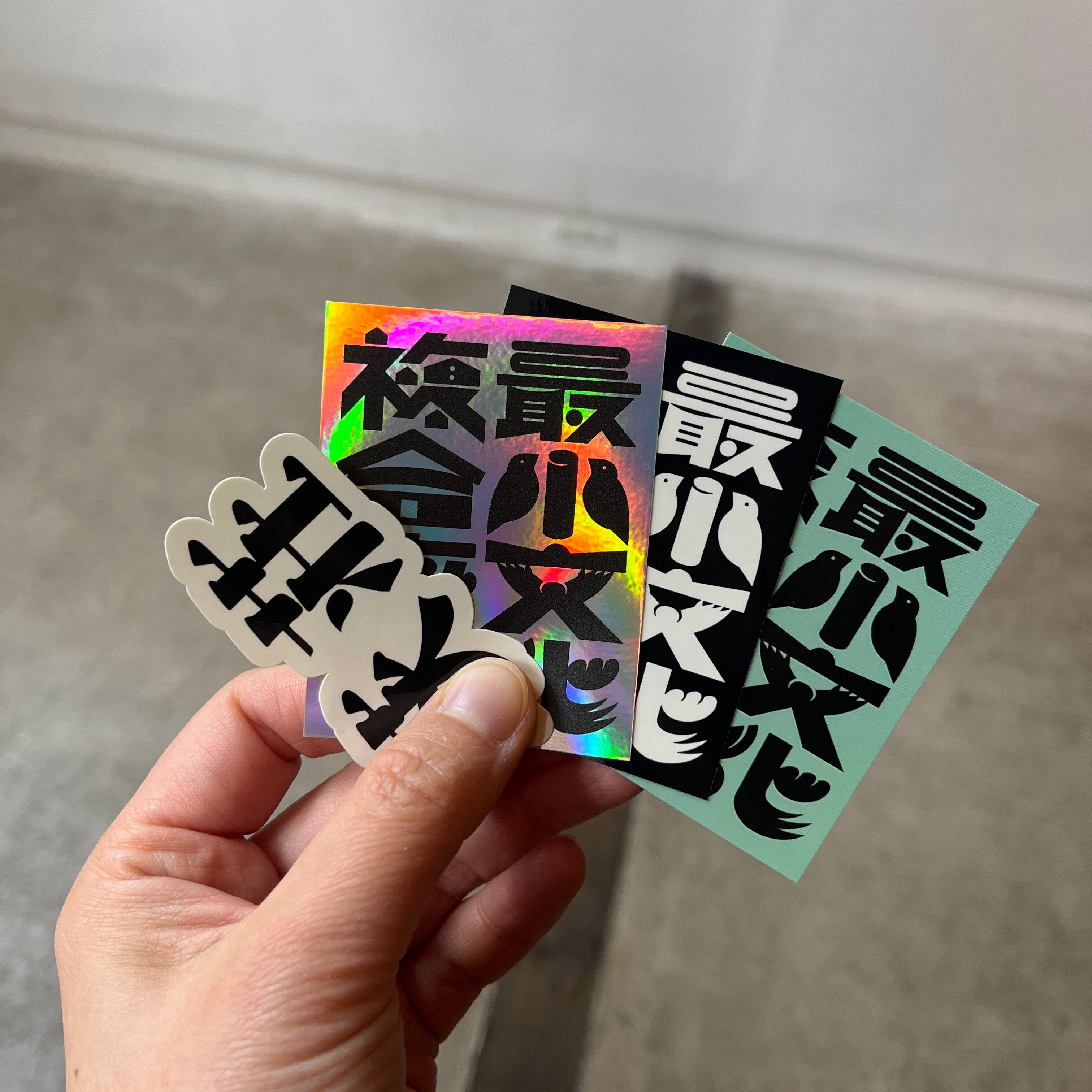 セット内容:ステッカー4枚(黒1枚、緑1枚、ホログラム1枚、萩荘1枚)